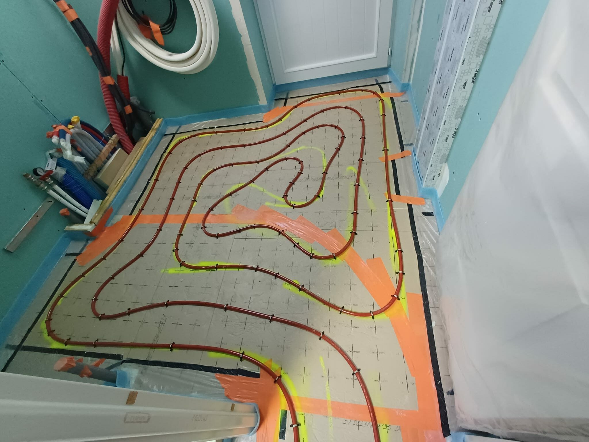 Il s’agit d’une installation de chauffage central qui communique sa chaleur à l’air ambiant par le sol. Un réseau de tuyaux véhiculant l’eau chauffée circule dans la dalle en béton. Le plancher chauffant a l’avantage de ne nécessiter qu’un fluide chauffé à basse température (de 35 à 40°C) et de pouvoir utiliser toutes les formes d’énergies (solaire, géothermique, gaz, fioul ou électrique).
